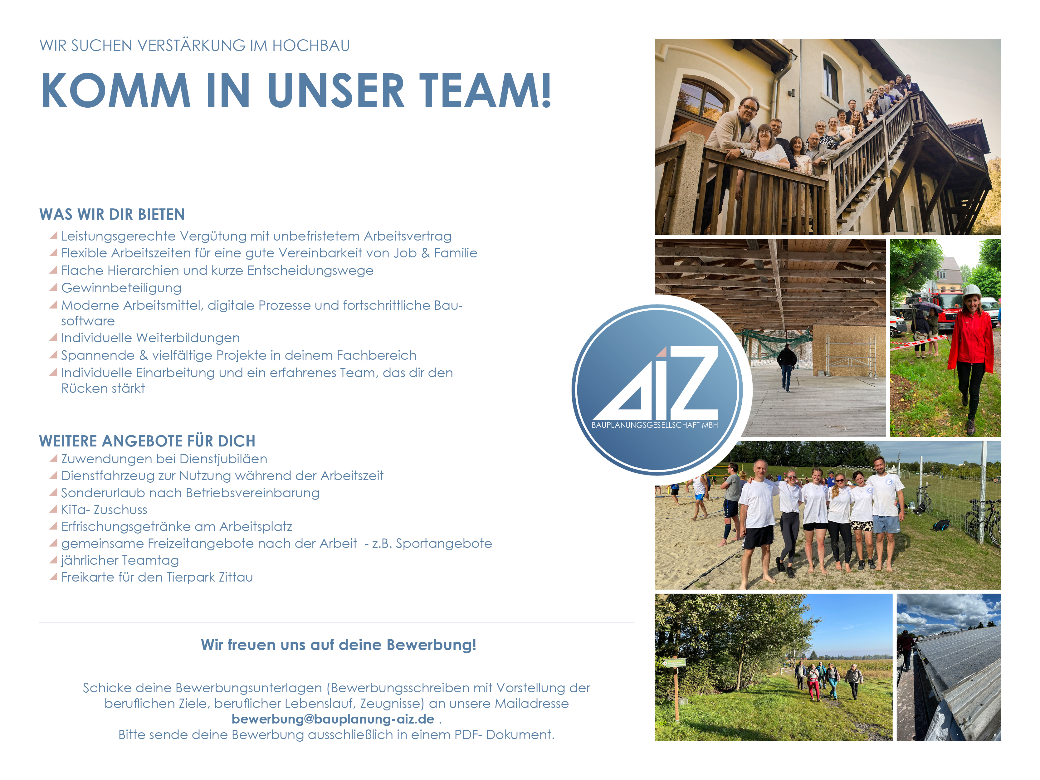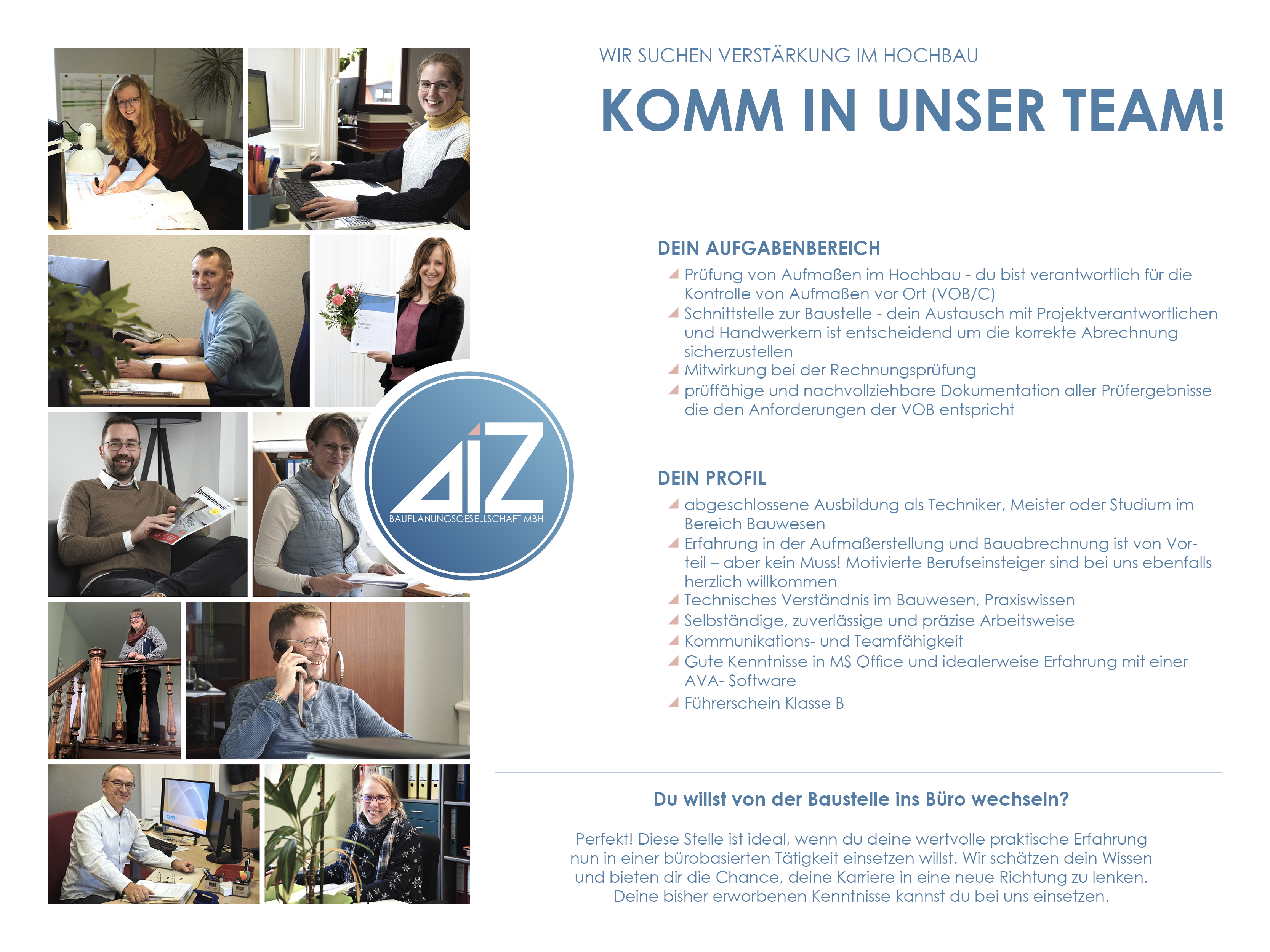 WIR SUCHEN VERSTÄRKUNG FÜR UNSERE BAUÜBERWACHUNG IM HOCHBAU