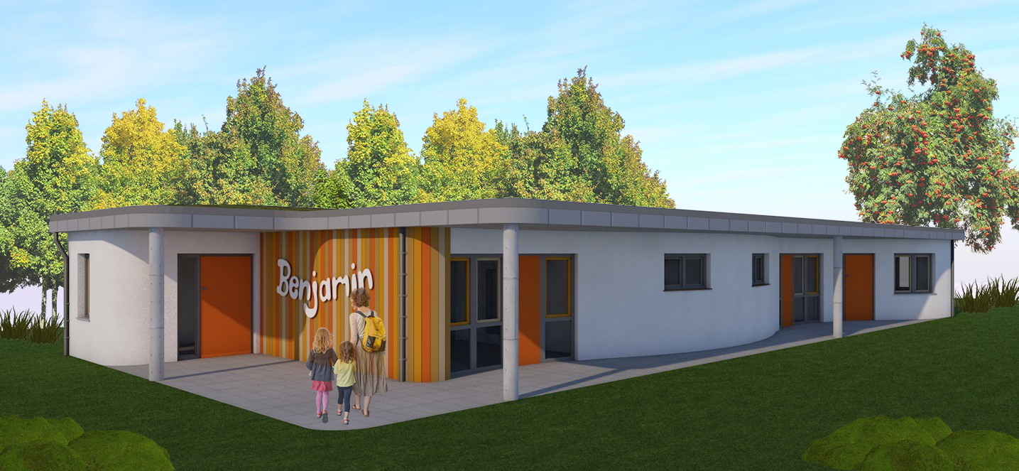 Nach einer langen Vorbereitungszeit war es am 23.06.2021 endlich soweit. Für die KITA Benjamin fiel der Startschuss zum Neubau der Kinderkrippe. Nach dessen Fertigstellung im Januar 2022 wird im einem zweiten Bauabschnitt die Villa zu einem Kindergarten und Hort ertüchtigt.